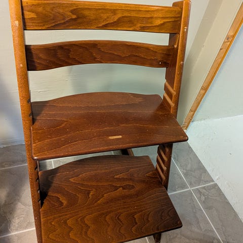 2 Stokke Tripp trapp stoler selges. Brukt av et tvillingpar og kjøpt nye av oss i 2016/2017. Noe bruksmerker. Selges til 1200kr pr styk.