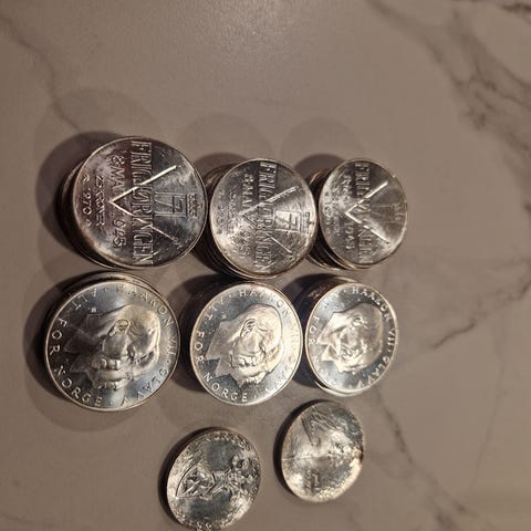 Frigjøringen 8. mai 1945 minnemedaljer med portrett Haakon VII og Olav V