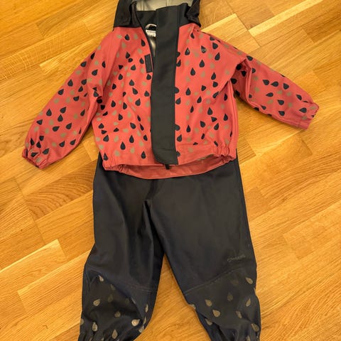 Parkdress frå Troll collection. Godt brukt. Har en del synlige merker/skitt. Mulig dette kan skrubbast vekk. Har eitt lite hull på kvar arm. Ellers ikkje slitasje eller hull. Heile fotstrikk i gummi.