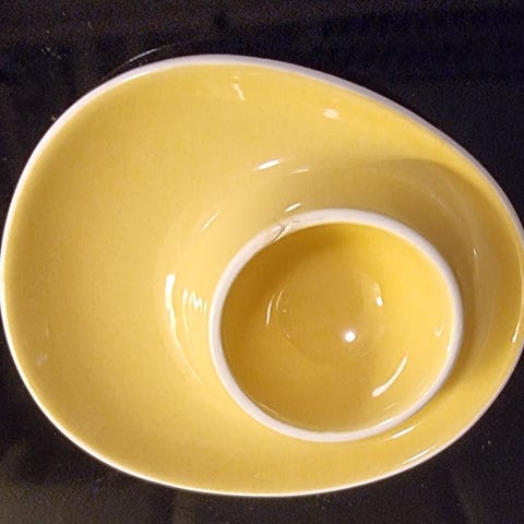 Servise kremfarget med oransje detaljer