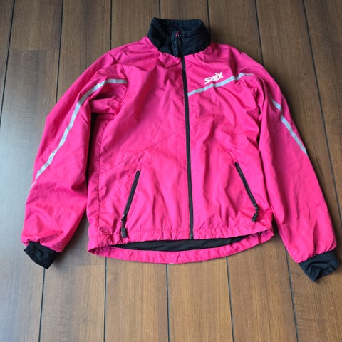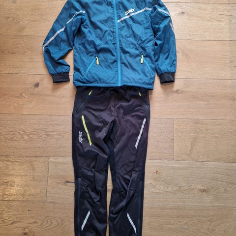 Swix skidress for jente i størrelse 152. Sett med jakke og bukse i flerfarget design, hovedsakelig i rosa og mørkeblå toner. Plagget er laget i polyester. Jakken har glidelås i front, høy krage og elastiske mansjetter. Buksen har rett passform og Swix-logo på låret. Egnet som yttertøy til ski og annen utendørs aktivitet i kjøligere vær.