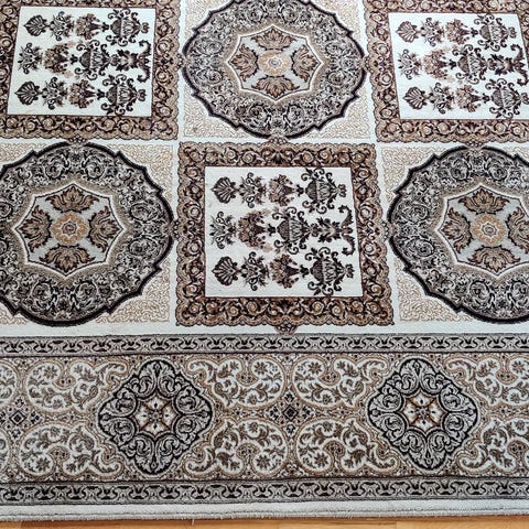 Flott og stort håndknyttet teppe av typen Cleopatra Prado, laget i ren ull. Klassisk og tidløst mønster som passer godt i stue eller spisestue.