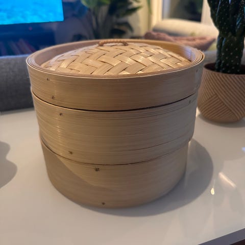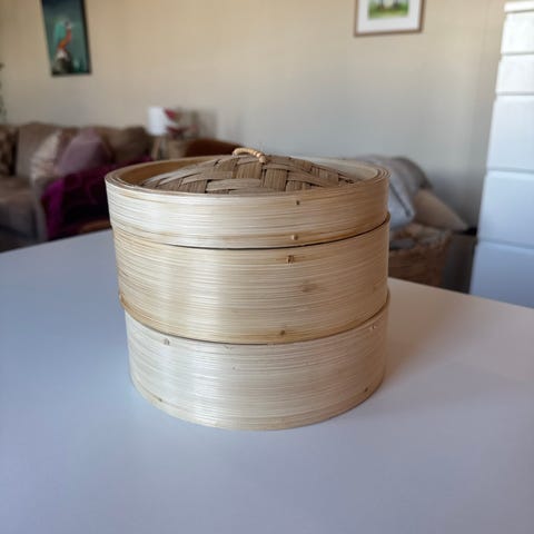 Dampkoker i bambus med to etasjer. Selges da den ikke blir brukt. Kun brukt et par ganger.