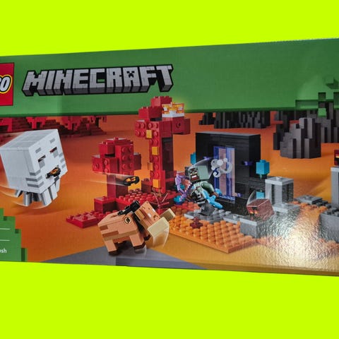 Selger en uåpnet Lego Minecraft Underverden-lavakamp.