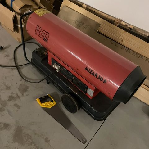 Kraftig diesel/parafin varmekanon (fan heater) på 30 kW, perfekt til oppvarming av garasje, verksted, lager, byggeplass eller telt.