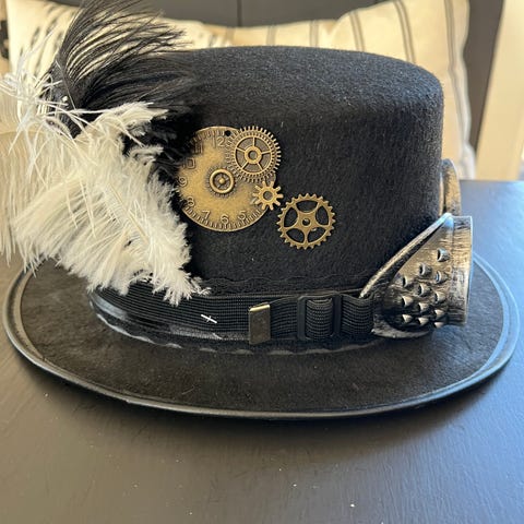 Vurderer å selge denne flosshatten med disse rå steampunk brillene grunnet flytting og mangel på plass. Brillene er justerbare og hatteb har et tøyelig bånd på innsiden slik at den skal sitte godt fast uansett👍🏻