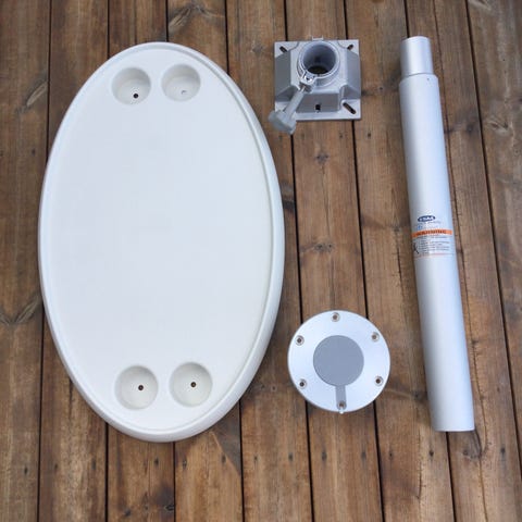 Aluminiumsplate som er 5mm tykk. 52,5cm x 56,5cm nede og 52,5cm x 59 cm oppe.