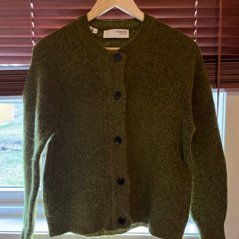 Vila cardigan for dame i størrelse XL. Cardiganen er grønn og laget i polyester. Den har lange ermer, v-hals og knepping med knapper foran. Ribbestrikkede kanter nederst og på ermene gir en mer definert passform. Egner seg godt som et lag over topper, skjorter eller kjoler til hverdagsbruk.