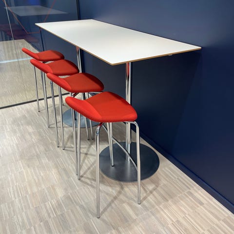 Passer i møterom, kantine eller pauseområde der det er behov for både arbeidsplass og sitteplasser langs en høy benk.
