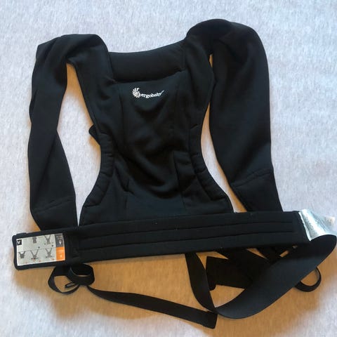 Bæresellen er en Ergobaby Original-modell som kan brukes til å bære barn på mage, hofte eller rygg, avhengig av barnets alder og behov. Den gir støtte til både barn og bærer, med polstrede skulderstropper og midjebelte som fordeler vekten jevnt.