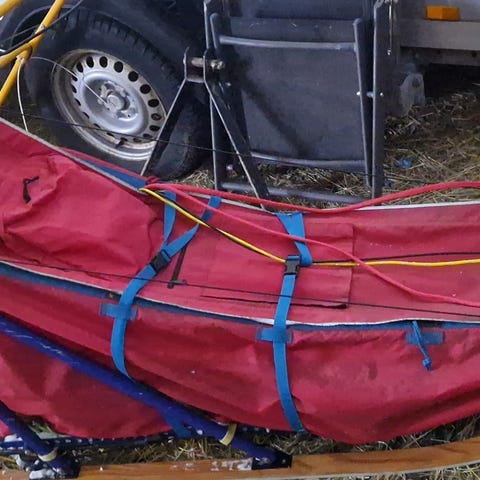 Hundeslede som trenger litt vedlikehold.