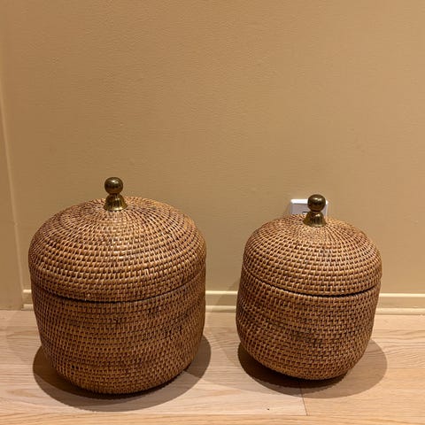 Flettet rotting kurv i naturlig farge. Kurven har en oval form og er egnet til oppbevaring eller dekorative formål.