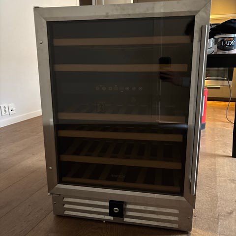 Temptech vinkjøler fra Oslo-serien i svart utførelse. Skapet har flere hyller for oppbevaring av vinflasker i stående eller liggende posisjon. Døren har mørk front som beskytter innholdet mot lys. Egner seg for innendørs bruk til temperert lagring og oppbevaring av vin i hjem eller serveringsmiljøer. Skapet var nytt i 2024. (www.temptech.no)