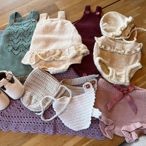 Body, jakke, genser, tøfler/sokker, lue og 1 par søte småsko.