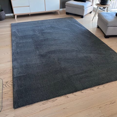 Grått ullteppe som er pent brukt.