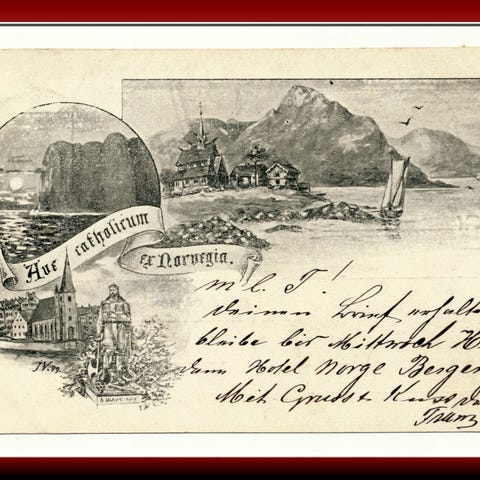 ** VAKKERT LITHO HILSEN fra NORGE ( NORVEGIA ) BRUKT 1898 ? ** REF: 7732