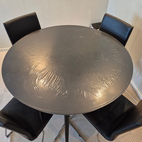 6 stk spisestoler fra skeidar selges. Modell Saturn (Nypris 999,-). Svart velur med svartlakkerte bein. Er lite og pent beult- ingen synlige merker/slitasje.