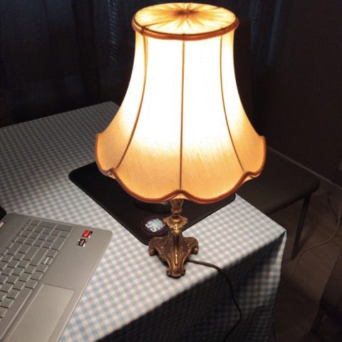 Bordlampe i beige metall som ny ikke brukt.
