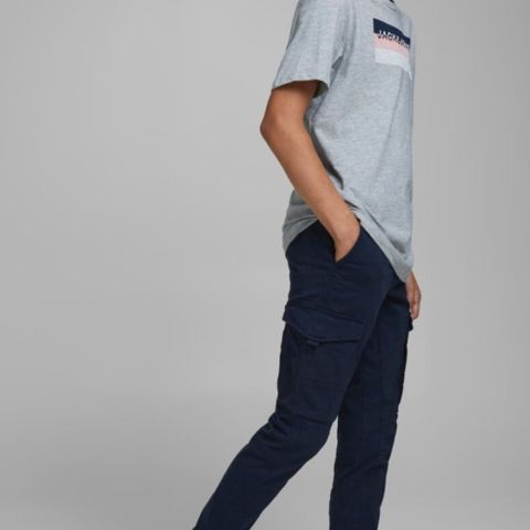Jack & Jones Jjpaul Jjflake Akm 542 bukse for barn i størrelse 164. Buksen er flerfarget med hovedfarge i mørke toner og er laget i bomull. Modellen har flere lommer, blant annet cargolommer på sidene, samt baklommer med knapp. Passer som hverdagsbukse for unisex barn i ca. størrelse 164.