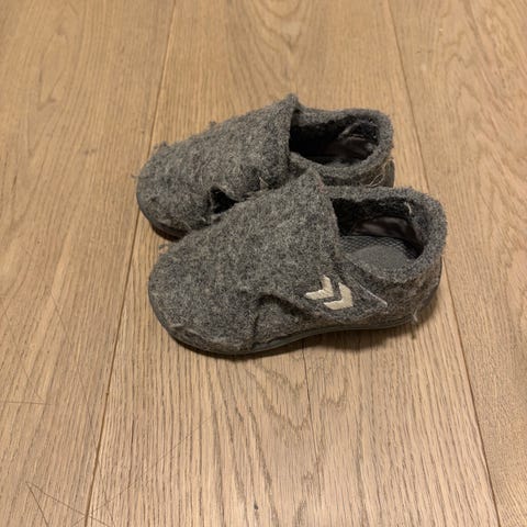 Brune tøfler i ull. Pent brukt. Svært enkle å ta på, med dobbel borrelåsåpning.