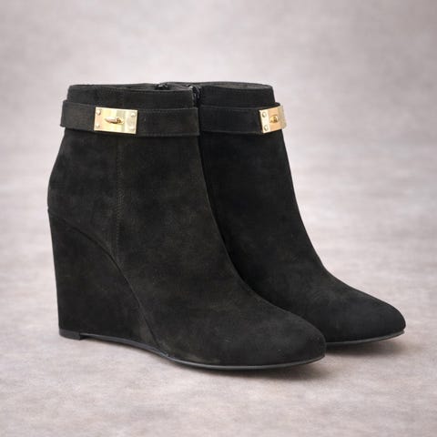 Støvlene er svarte med snøring foran og grov yttersåle i gummi som gir godt grep. Overdelen ser ut til å være i en kombinasjon av glatt materiale og semsket preg. Modellen har polstret kant rundt ankelen for ekstra komfort og glidelås på innsiden for enklere av- og påtaking.