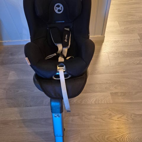 Cybex Sirona Z barnesete og Sirona Z i-Size base, begge fra 2022. Setet har intern 5-punkts sele og polstret hodestøtte for ekstra støtte til barnet. Det kan brukes bakovervendt og har justerbar liggestilling. På bildene følger det også med base med støtteben for montering i bilen. Barnesetet passer i de fleste biler som har kompatible festepunkter for basen. Egner seg til daglig bruk i bil for trygg transport av barn.