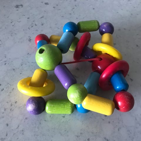 Passer som gripe- og rangleleker for små barn. Kan brukes hjemme, i vogn eller lekegrind under tilsyn av voksen.