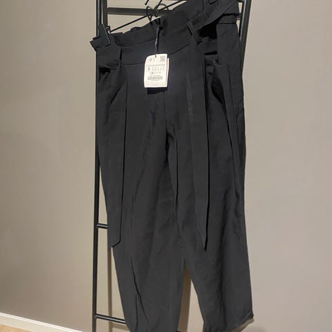 Zara bukse for dame i størrelse S. Buksen er hvit Den har belte i samme stoff.Modellen har rette ben. Ubrukt!