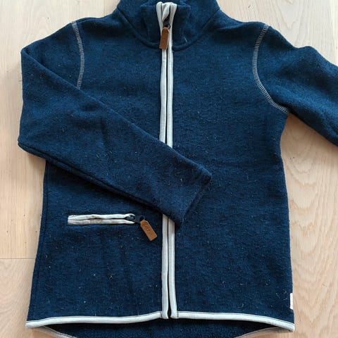 Ebbe fleecejakke i størrelse 116. Jakken er grønnmelert med gjennomgående glidelås foran og en glidelåslomme i siden. Ståkrage og lett buet kant nederst på ryggen. Myk fleece som passer godt som mellomlag eller lett ytterlag. Materiale og vaskeanvisning fremgår av innvendig merkelapp.