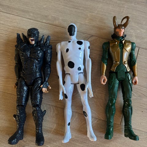 To figurer a ca 30 cm høyde. Bevegelige ledd og armer og bein.