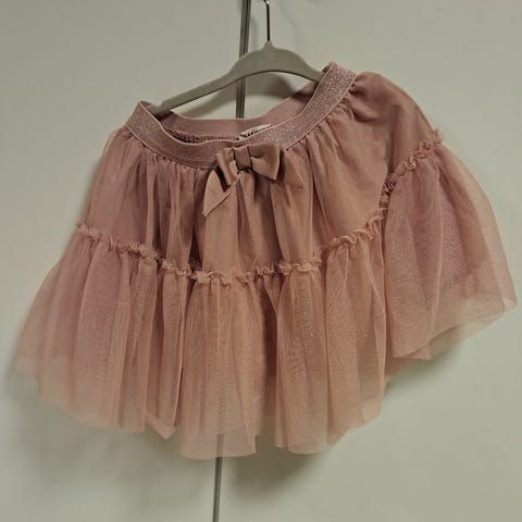 Pakke med ulike plagg til jente i størrelse 104. Inneholder flere kjoler i forskjellige farger og mønstre, samt en hettejakke med glidelås og lommer. Klærne har sommerlige snitt og passer til hverdagsbruk eller enklere penbruk. Fargene er varierte med blant annet rosa- og blomsterprint. Materiale er typisk lett stoff egnet for barneklær.
