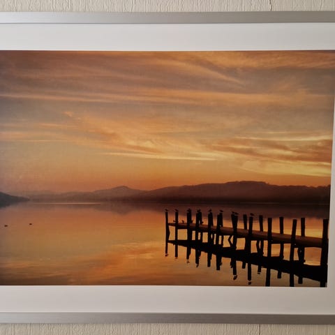 Innrammet bilde av Stange kirke med gullfarget ramme