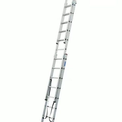 Krause skyvestige i aluminium. Stigen består av flere deler som kan skyves ut for å oppnå større arbeidshøyde. Den har sidevanger og trinn i aluminium og er egnet til arbeid på fasader, tak og lignende der det er behov for variabel høyde. Stigen kan brukes utendørs og har stabiliserende fotlist nederst for bedre støtte mot underlaget.