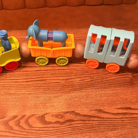 Stor togstall. Bruk dreieskiven for å plassere opptil fem tog i individuelle staller. Bakdørene kan åpnes for at man skal kunne komme til togene bakfra