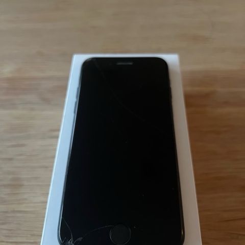 Selger en svart iPhone 7. Telefonen slår seg på, men er iCloud-/aktiveringslåst, og kan derfor ikke brukes uten at tidligere eier fjerner den fra sin Apple-ID.