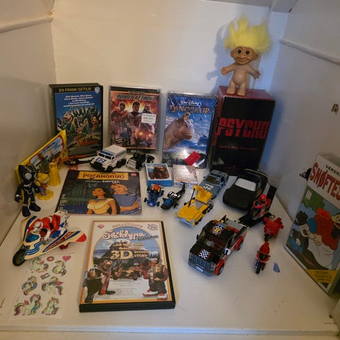 Forskjellige gamle greier alt fra lego,figurer, lp , dvd ,vhs, gammelt vhs kamera og mye annet gøy for den som samler:)