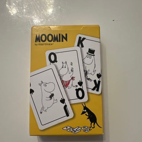 Sett med tre kortspill: Mummi kortspill, Gnav kortspill og Donald Duck kortstokk. Mummi-spillet har illustrerte kort med figurer fra Mummidalen og en egen spillforklaring. Gnav-spillet består av nummererte kort med klassiske illustrasjoner tilpasset Gnav-reglene. Donald Duck-kortstokken er en standard kortstokk med motiv av Donald Duck og andre figurer fra Andeby. Egnet for familiespill og kortspill for flere deltakere. Kortene er i god stand og alle er der men eskene er litt slitte.