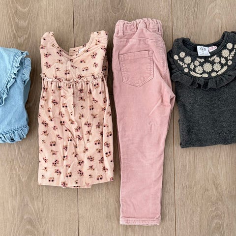 Klespakke med blant annet POMPdeLUX klær for jente i str 2 år. Pakken inneholder ulike plagg i hovedsak i rosatoner, blant annet topper, bukser og romper. Klærne har ulike mønstre og detaljer, egnet til hverdagsbruk for barn. Materiale og nøyaktige mål er ikke oppgitt av selger.