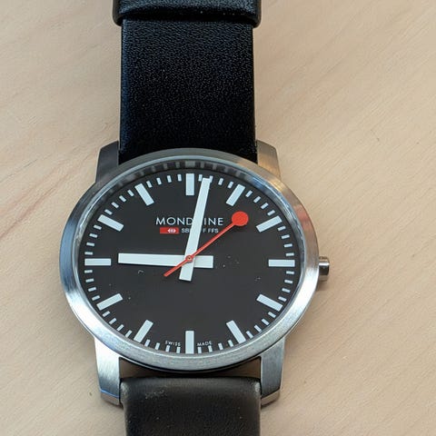 Official Swiss Railways watch selges. Har hatt den inne til vurdering hos urmaker som sier den har løs krone. Så reprasjon at dette på påberegnes av den som kjøper klokken. Går litt av og på. Kjøpt hos Frisenberg på Lillehammer i 2019. Fikk ny klokke til jul. Ønsker derfor å selge denne.