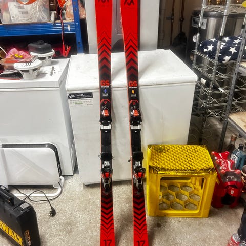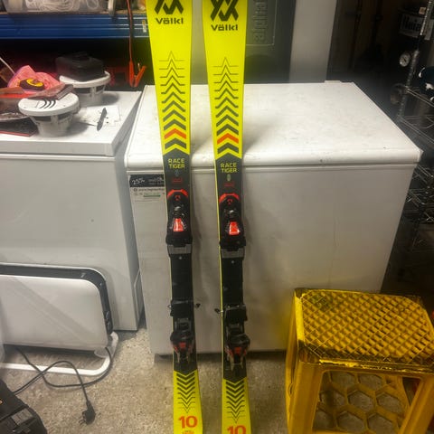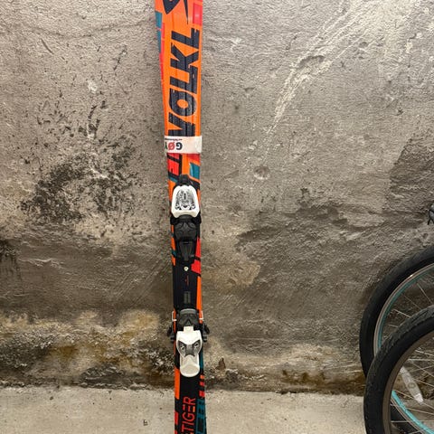 Völki Racetiger GS alpinski med integrerte bindinger.
