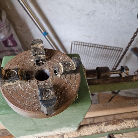 Maskinen er egnet til trearbeid som dreiing av boller, staver og andre treemner. Grønn farge, veggmontert løsning som vist på bildene.