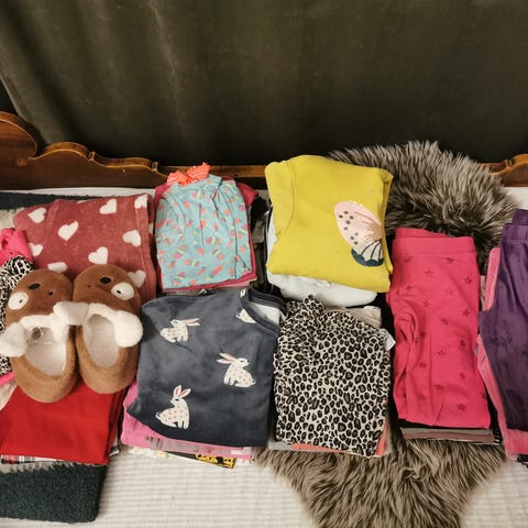 Selger en stor klespakke i størrelse 122/ 122-128 som inneholder vår jakker, gensere, fleece sett, hverdags kjoler, fest antrekk ++