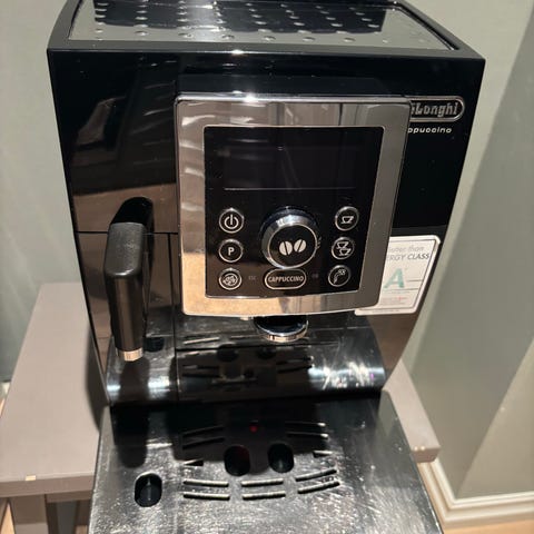 Maskinen har innebygd kaffekvern med justerbar malingsgrad og frontpanel med dreiehjul og knapper for valg av kaffe type, mengde og funksjoner. Den har dampdyse for skumming og oppvarming av melk.