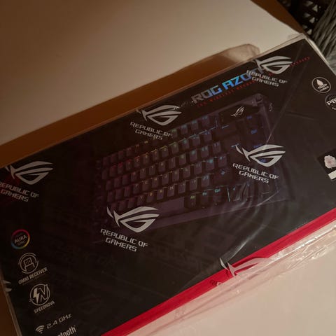 ASUS ROG Azoth tastatur i Gunmetal farge selges. NX Snow switch. Nordisk layout. Alt tilbehør, original eske og kvittering fra Elkjøp medfølger.