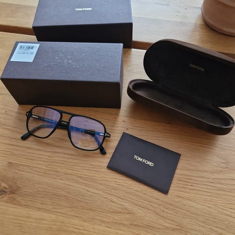 Tom Ford briller med +4 glass vis man ønsker det. Shaded Litt mørkere glass i toppen av ramma vis man er litt lyssky.