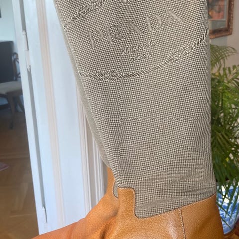 Prada støvletter i størrelse 38. Støvler i skinn med høy hæl og platå foran. Glidelås på innsiden av skaftet. Klassisk modell som passer til bruk både til bukser og skjørt/kjole i hverdagen eller til mer pyntede anledninger. En liten mangel på glidelås»hempe» , men fungerer fint å trekke opp glidelåsen.