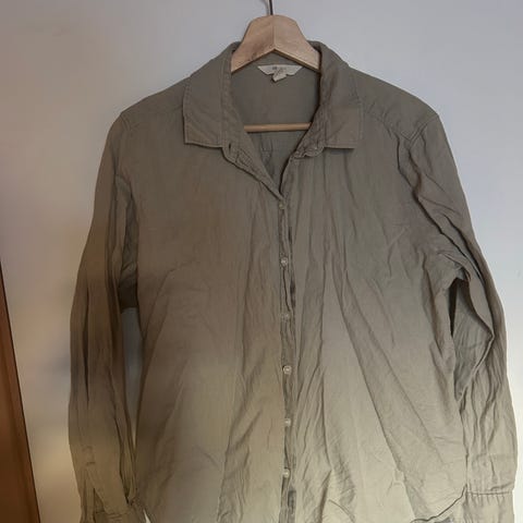 H&M skjorte for dame i størrelse M. Skjorten er flerfarget med vertikale striper og er laget i viskose. Klassisk skjortemodell med krage, knappestolpe foran og lange ermer med mansjetter. Passer til hverdagsbruk eller kontorantrekk, og kan brukes både alene eller lagvis over topp eller singlet.