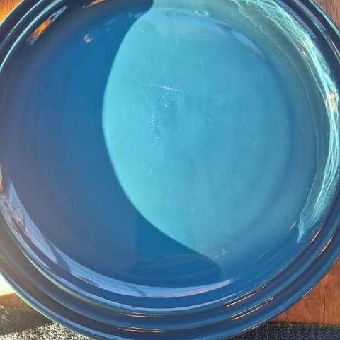 Selger 2 middagstallerkener fra Le creuset I fargen cerise. Tallerkene er va gammelt design og er 27 cm. Har noe bruksmerker, men ingen nag. Det ene fatet har mer merker enn det andre.