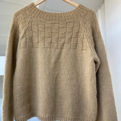 Pent strikket damegenser i 50 % bomull/50 % bambus (tynt garn)