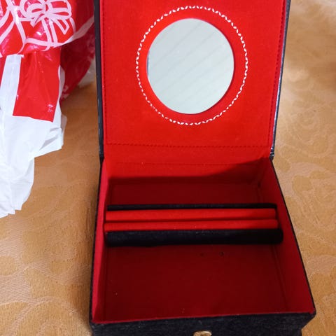 Gammel smykkeskrin med innhold